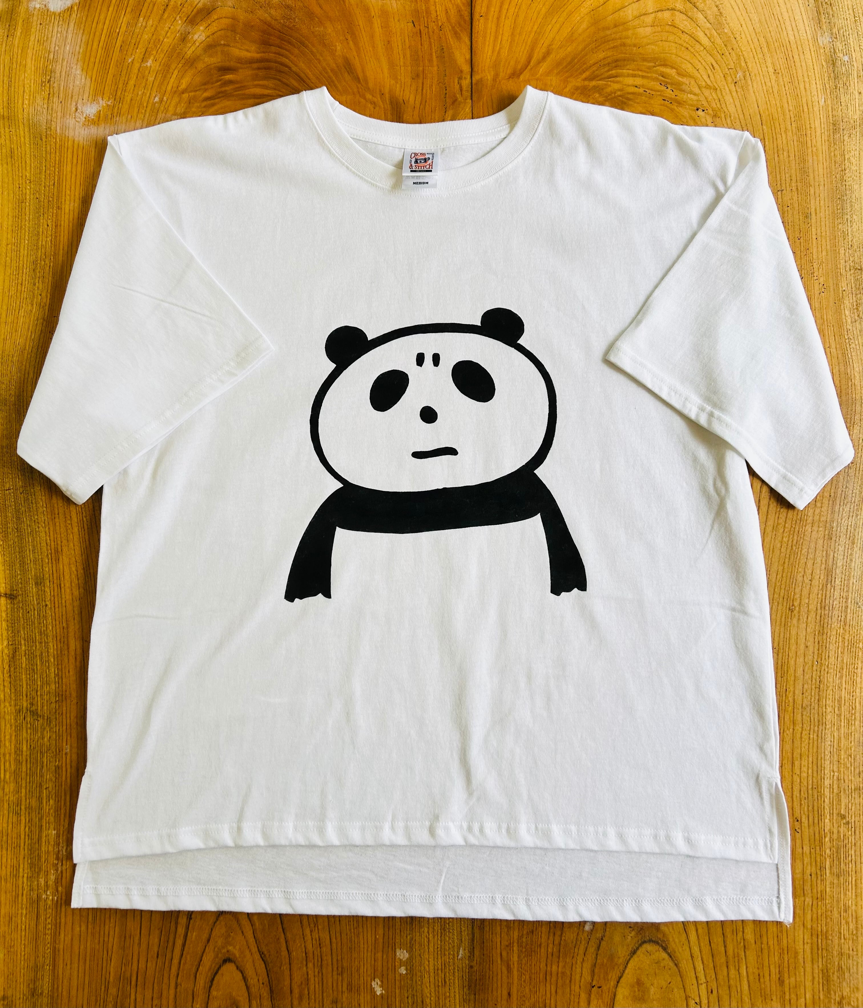 ゆったりしたシルエットのオーバーサイズTシャツです。いつも不機嫌なパンちゃんをプリントしました。